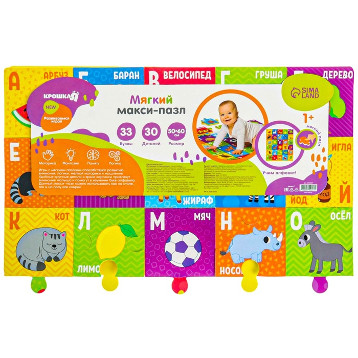 Мягкий пазл для малышей «Алфавит», 30 деталей, Крошка Я