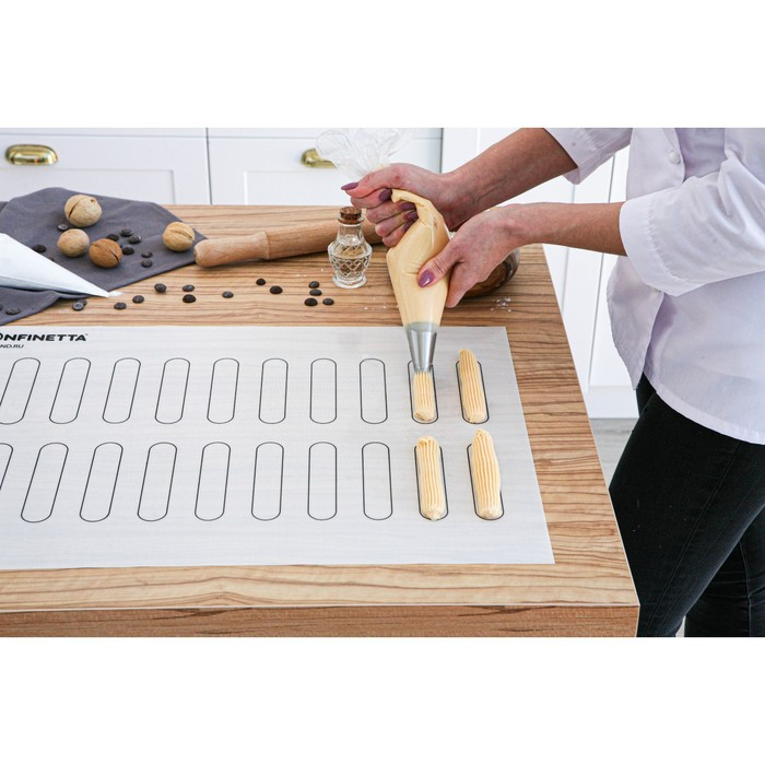 Армированный коврик для выпечки KONFINETTA «Эклер», силикон, 40×60 см, 0,4 мм, цвет белый