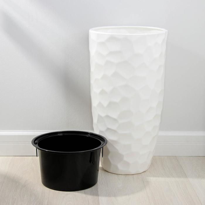 Кашпо для цветов со вставкой «Мозаика», 42 л (9 л), цвет белый