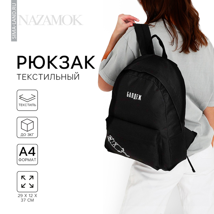Рюкзак школьный молодёжный «Балдёж», отдел на молнии, наружный карман, цвет чёрный