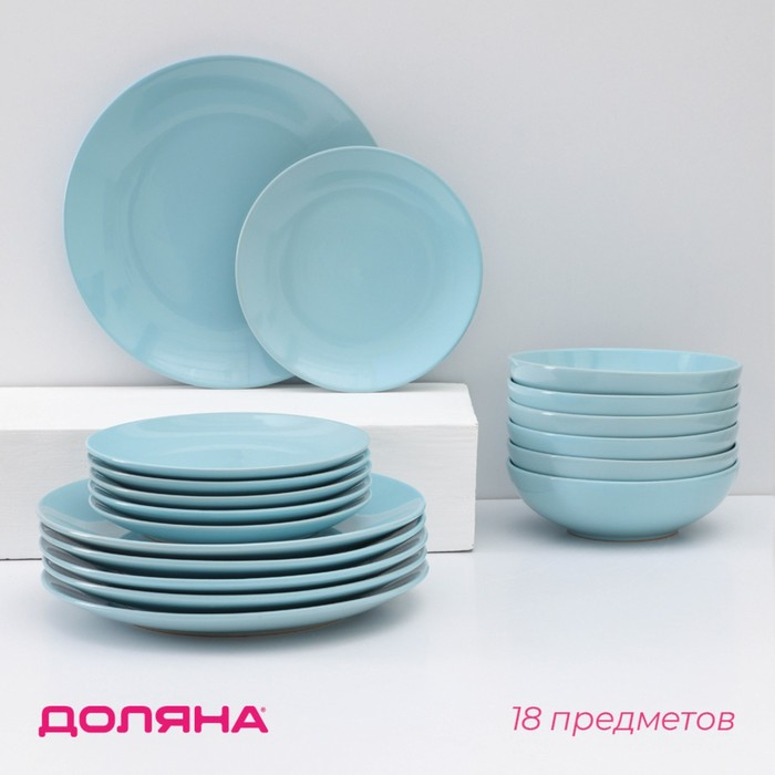 Набор тарелок керамических Доляна «Пастель», 18 предметов: 6 тарелок d=19 см, 6 тарелок d=27 см, 6 мисок d=19 см, цвет голубой