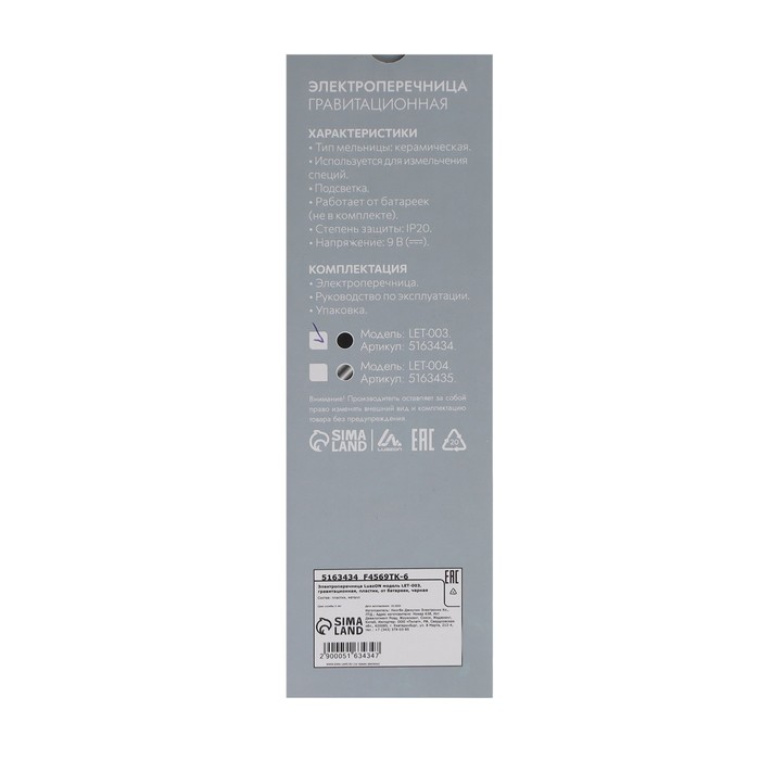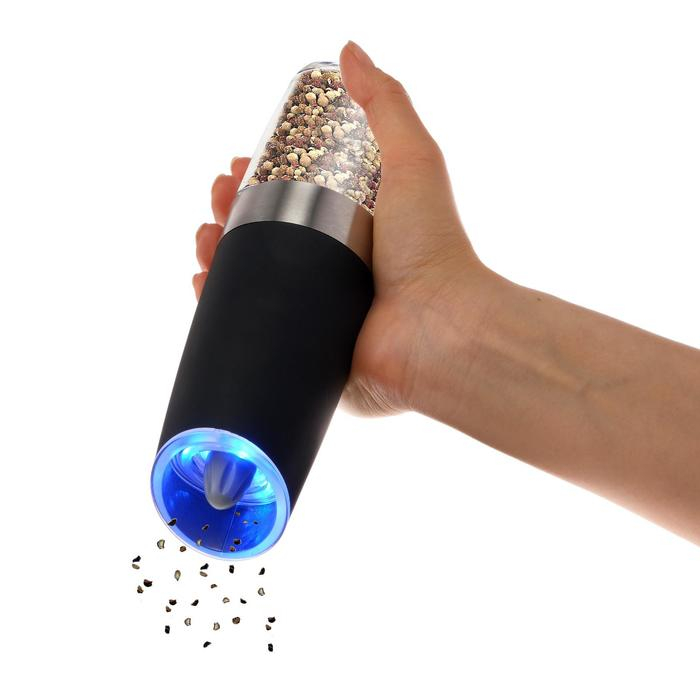 Мельница электрическая Luazon LET-003, гравитационная, пластик, от батареек, черная