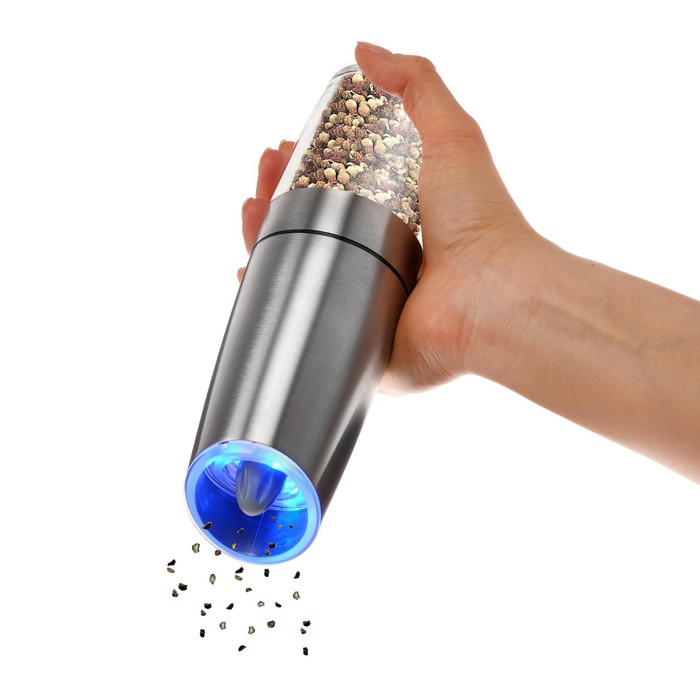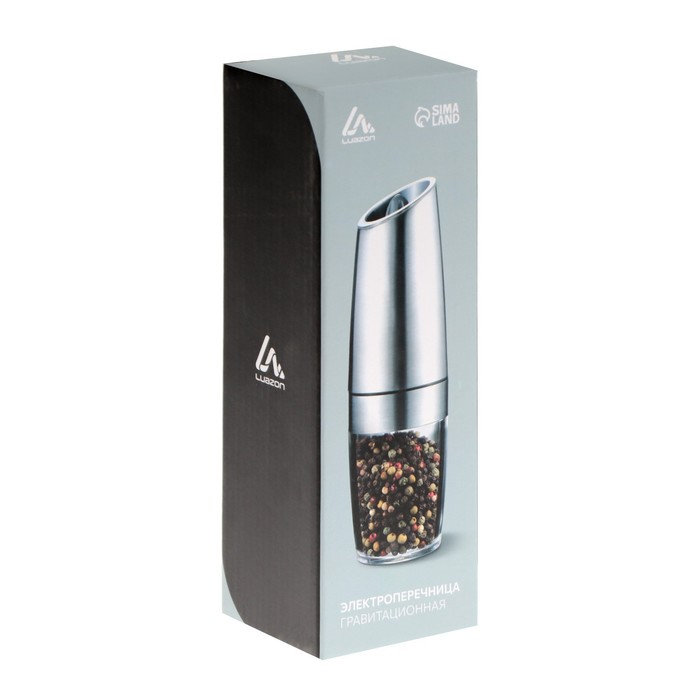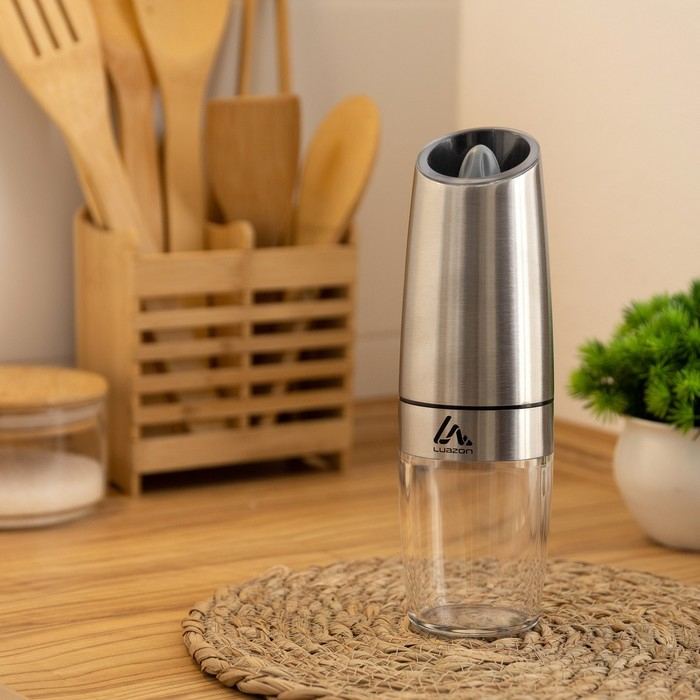 Мельница электрическая Luazon LET-004, гравитационная, металл, от батареек, серебристая