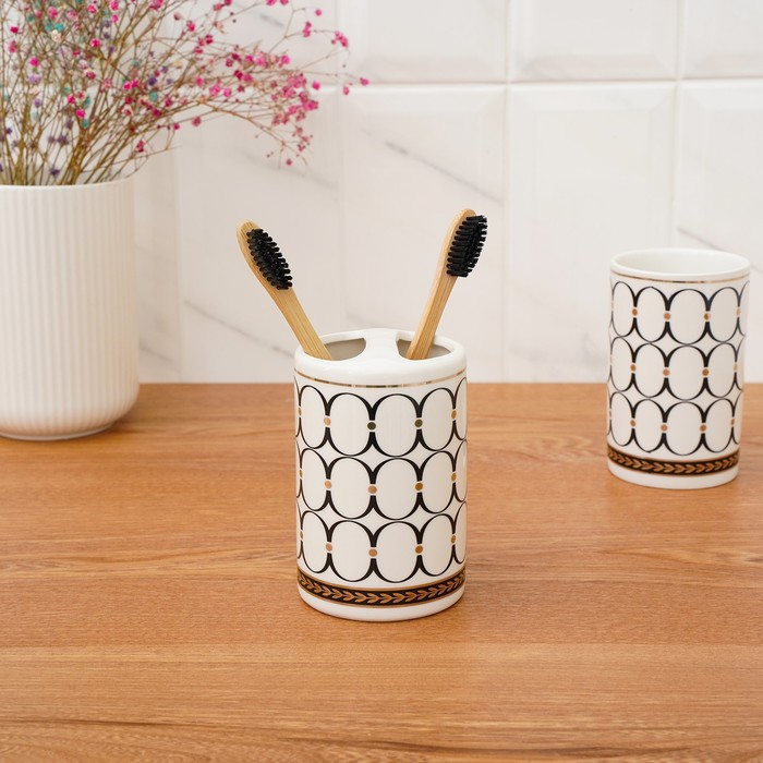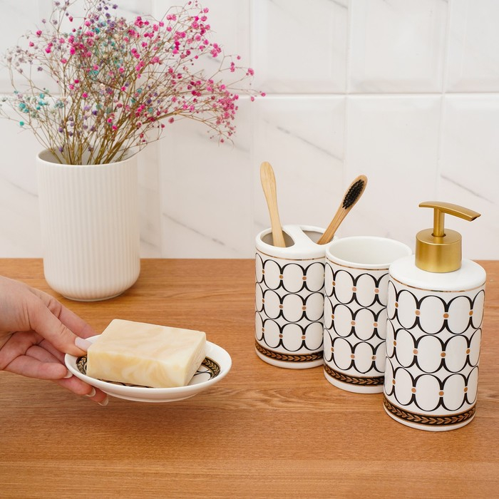 Набор аксессуаров для ванной комнаты Доляна «Изящество», 4 предмета (дозатор 250 мл, мыльница, 2 стакана), цвет белый