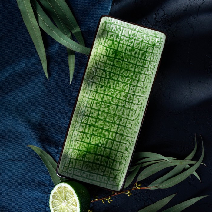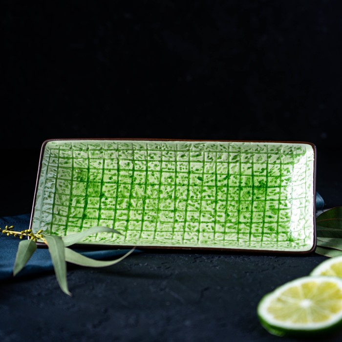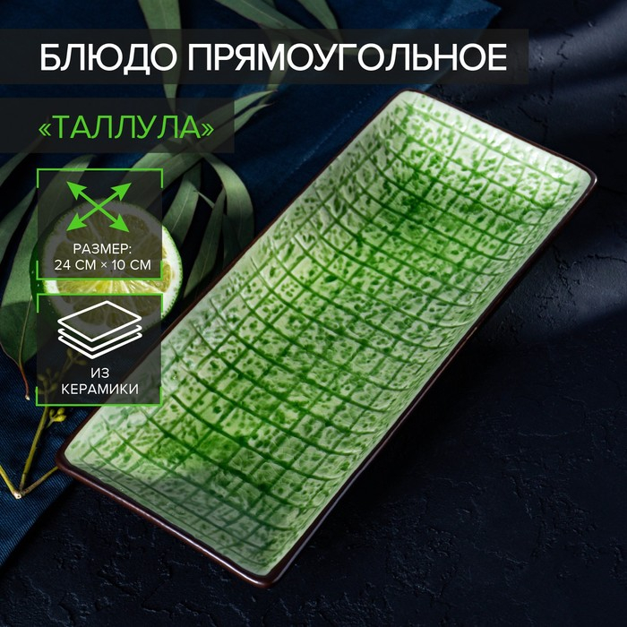 Блюдо керамическое прямоугольное «Таллула», 23,5×10 см, цвет зелёный