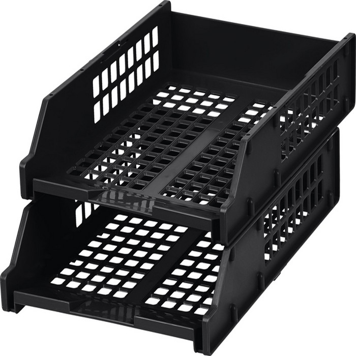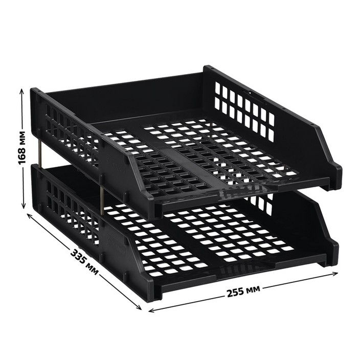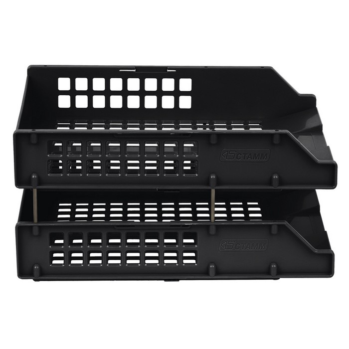 Набор лотков для бумаг горизонтальных Стамм STRONG, 2 штуки, на металлических стержнях, чёрный