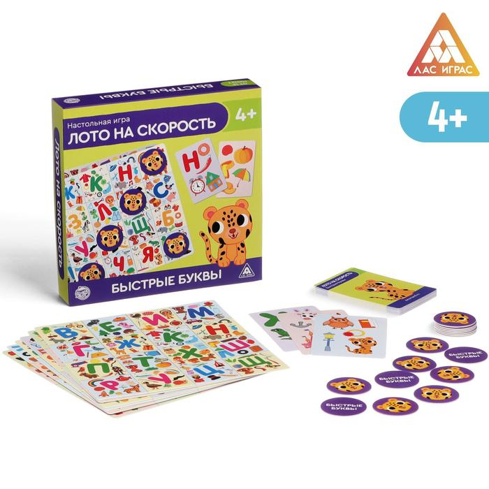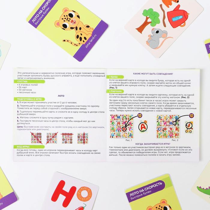 Настольная игра «Лото на скорость. Быстрые буквы», 26 карт, 6 игровых полей, 50 жетонов, 4+