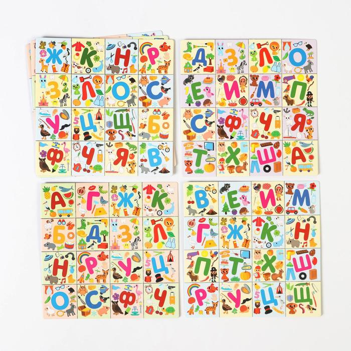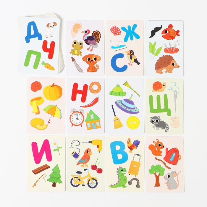 Это увлекательная и невероятно полезная игра-лото, которая поможет маленьким участникам запомнить буквы русского алфавита, а ещё значительно пополнить словарный запас. Раздавайте поля с буквами и картинками, вытягивайте карты и старайтесь быстрее всех составить ряд из четырёх жетонов на своём поле.