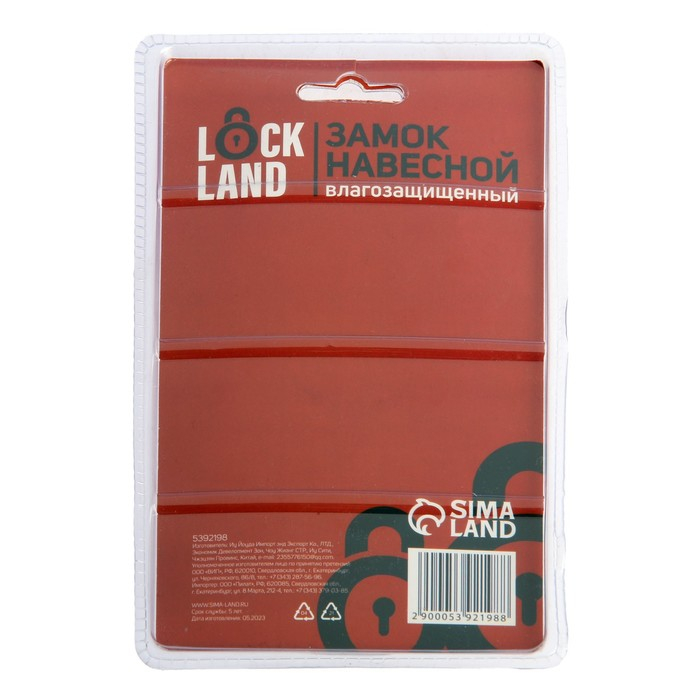 Замок навесной LOCKLAND, 65 мм, влагозащищенный, длинная дужка, 2 ключа, цвет черный