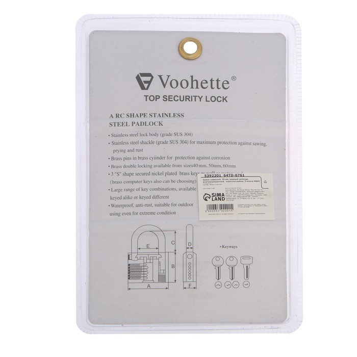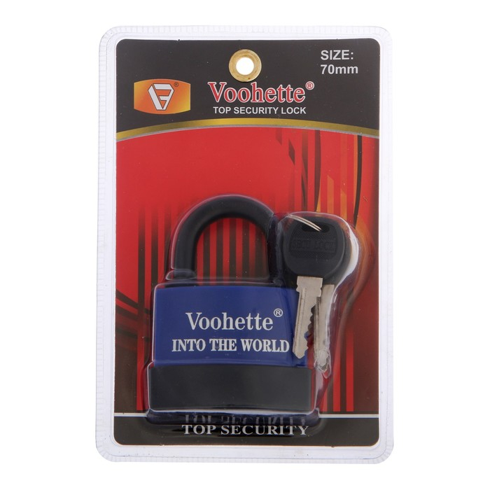 Замок навесной, 70 мм, медный цилиндр, влагозащищенный, короткая дужка, 3 ключа МИКС