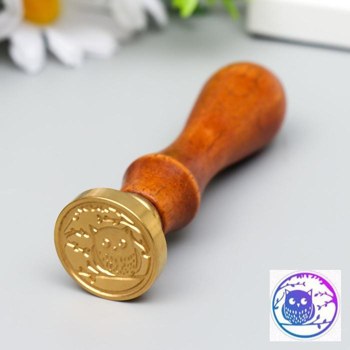 Печать для сургуча с деревянной ручкой "Совёнок на веточке" 9х3х3 см