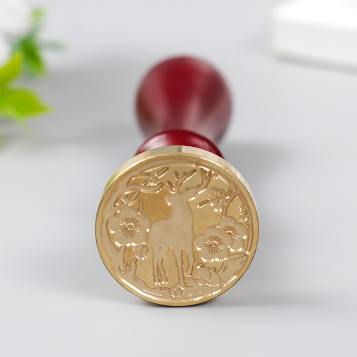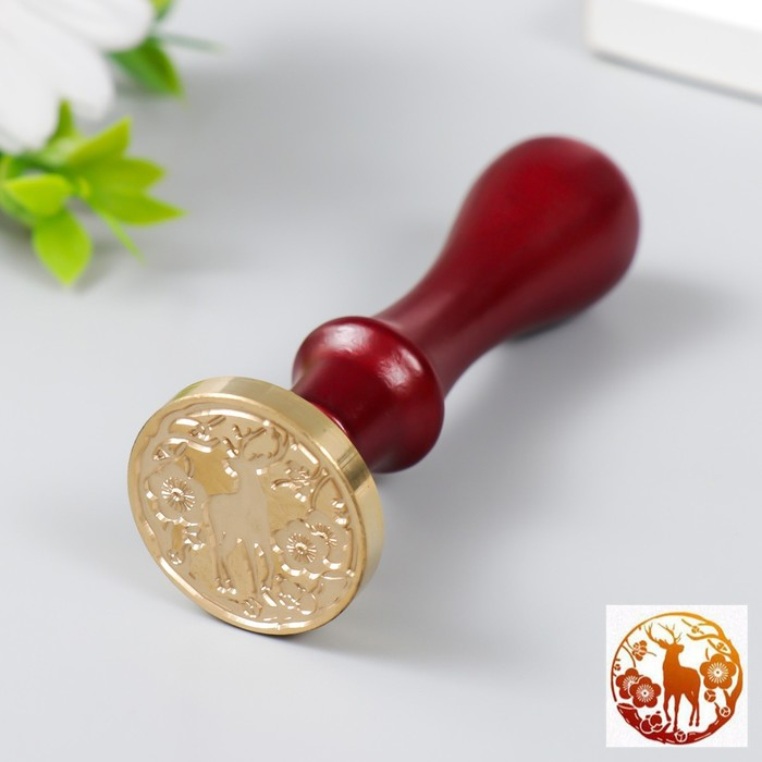 Печать для сургуча с деревянной ручкой "Олень в цветущем лесу" 9х2,5х2,5 см