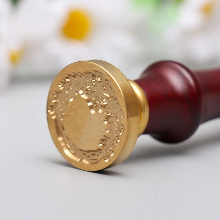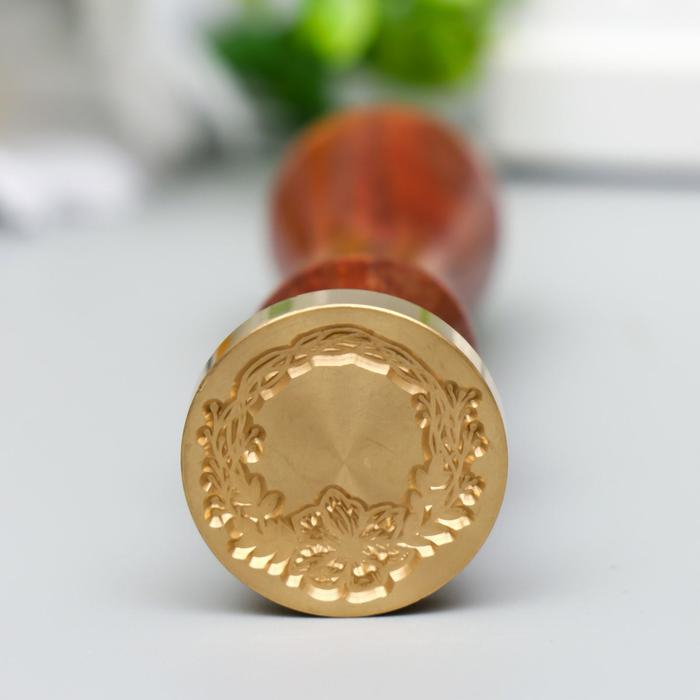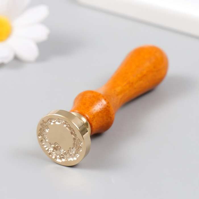 Печать для сургуча с деревянной ручкой "Венок с цветком" 9х2,5х2,5 см