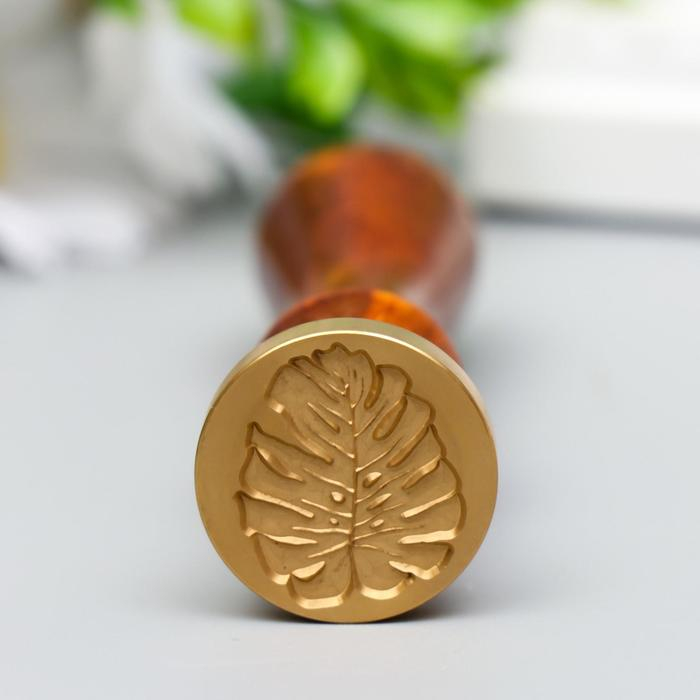 Печать для сургуча с деревянной ручкой "Лист монстеры" 9х2,5х2,5 см
