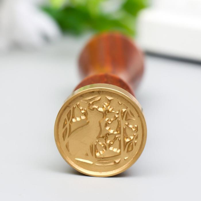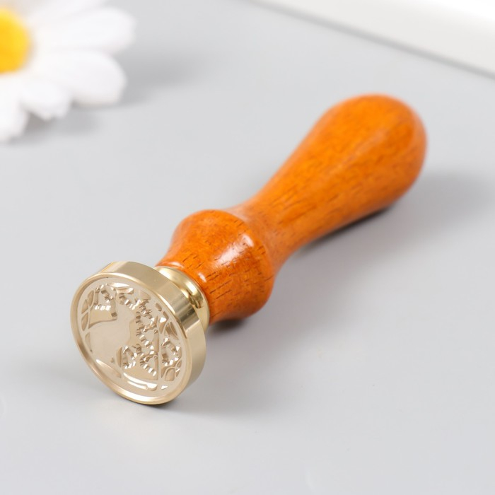 Печать для сургуча с деревянной ручкой "Кот и вьюнок" 9х2,5х2,5 см