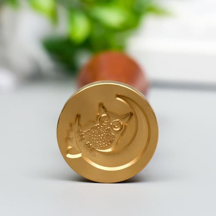 Печать для сургуча с деревянной ручкой "Филин на месяце" 9х2,5х2,5 см