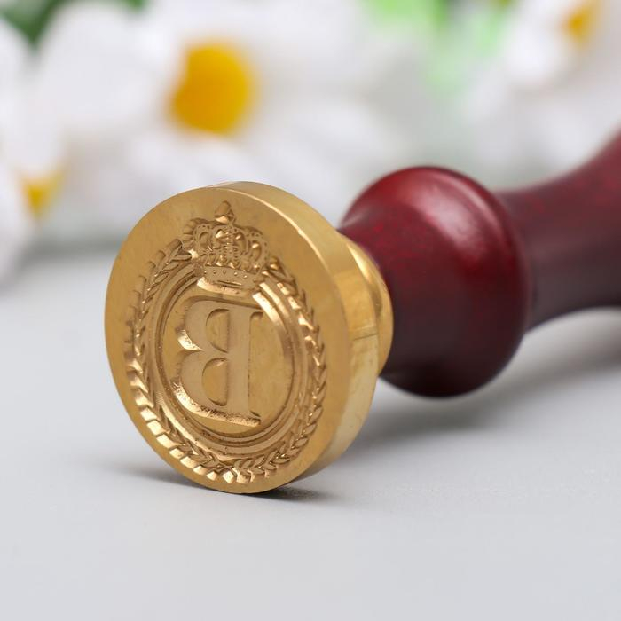 Печать для сургуча с деревянной ручкой "Корона с буквой B" 9х2,5х2,5 см