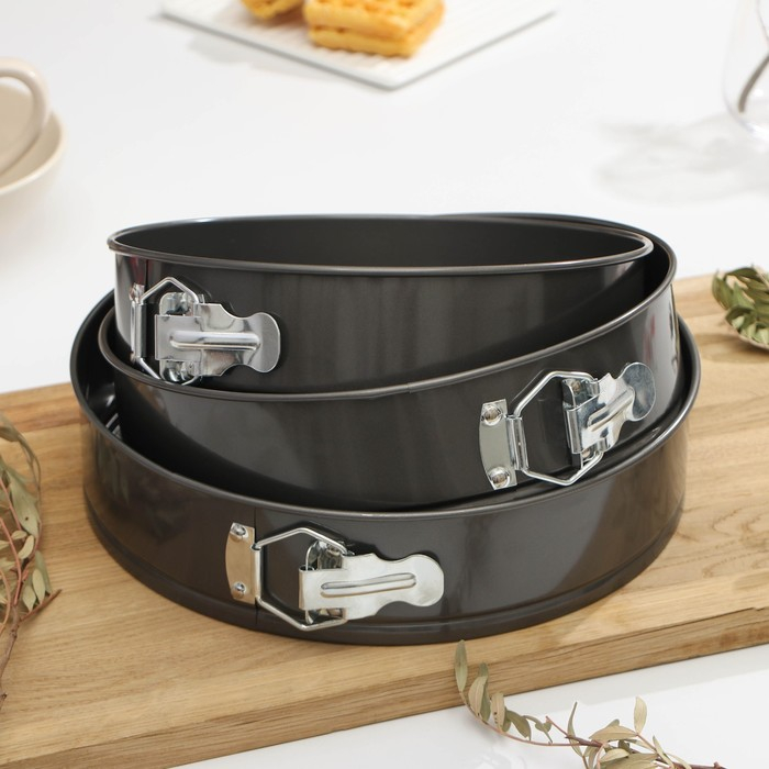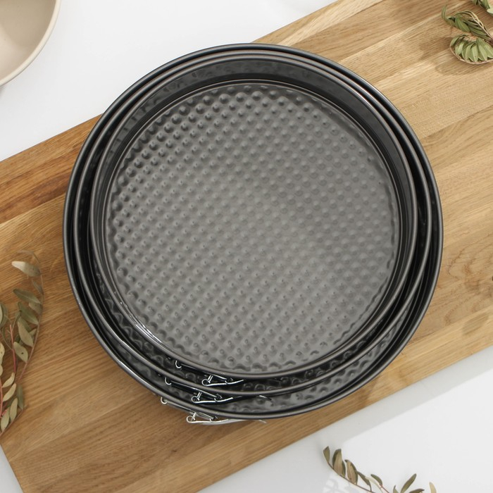 Набор форм для выпечки Доляна «Элин. Круг», 3 предмета: d=24/26/28 см, съёмное дно, антипригарное покрытие, цвет чёрный