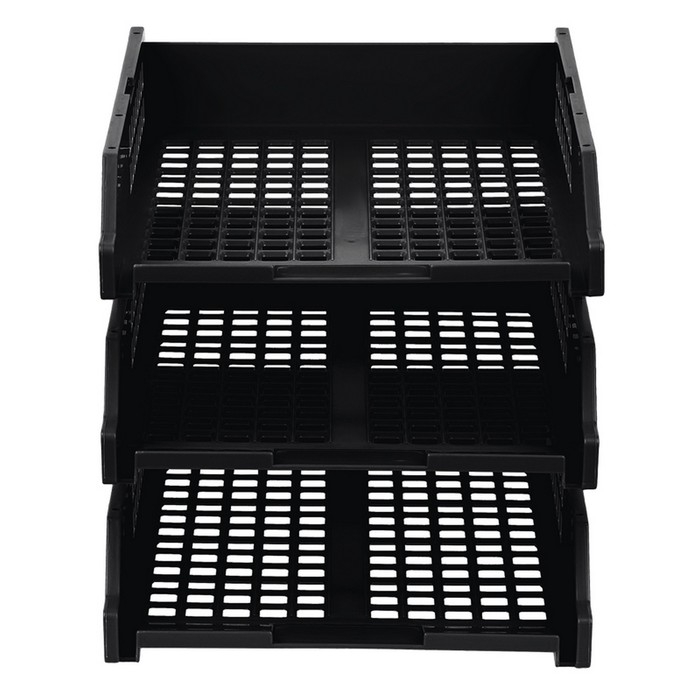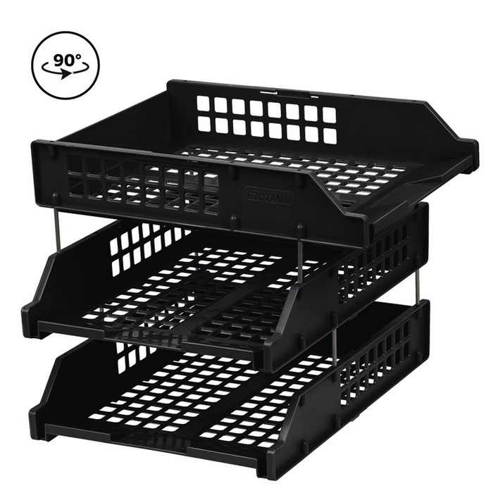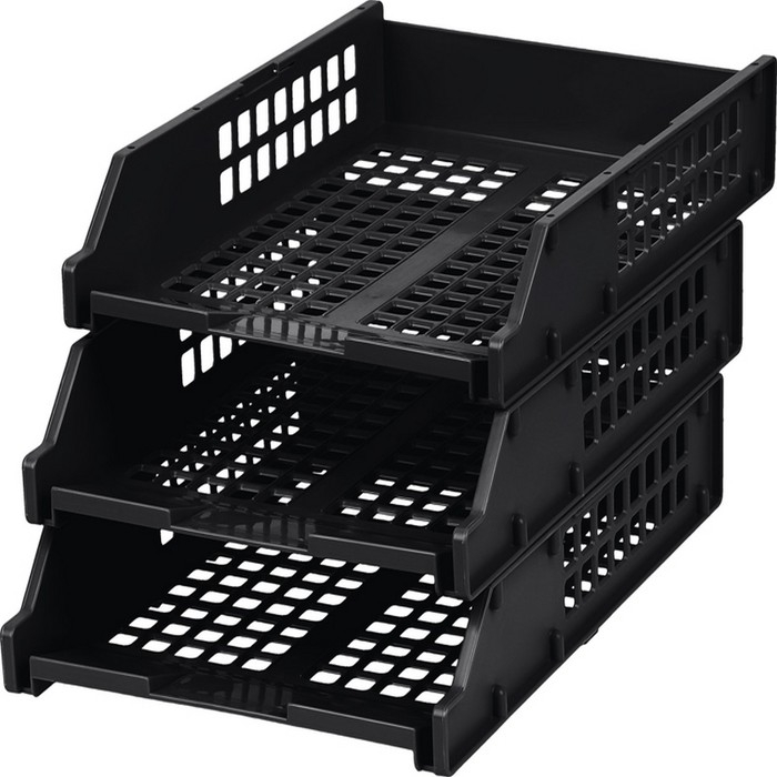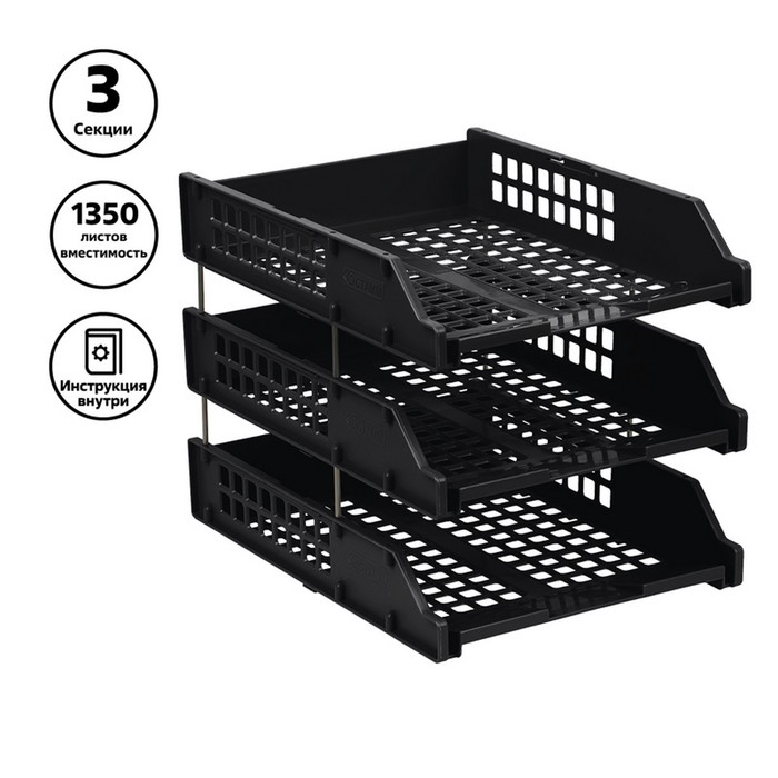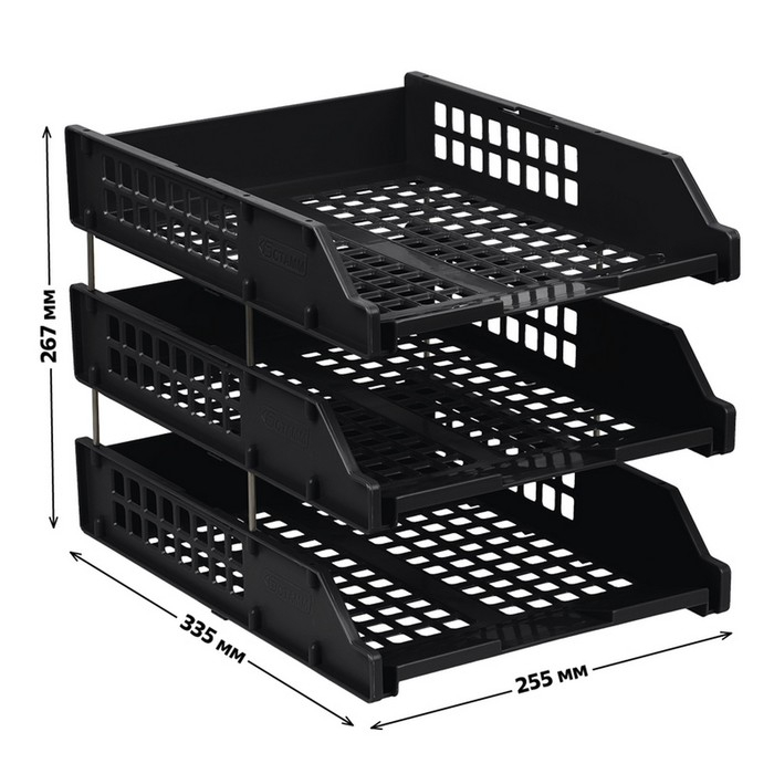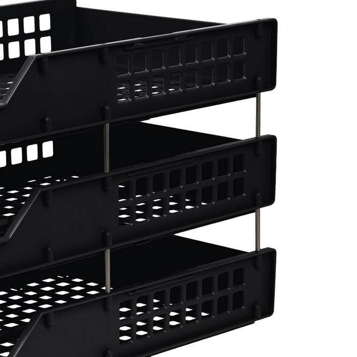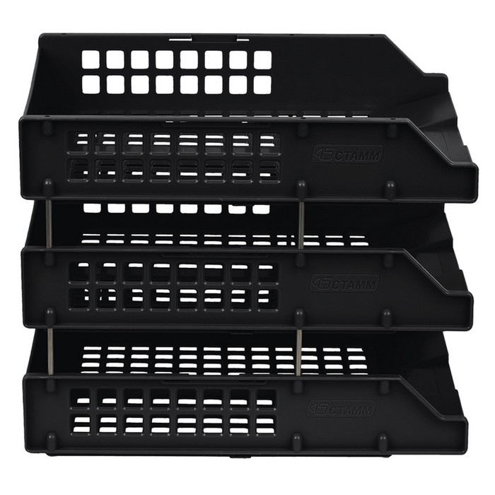 Набор лотков для бумаг горизонтальных Стамм STRONG, 3 штуки, на металлических стержнях, чёрный