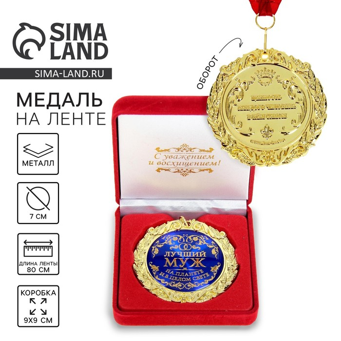 Медаль в бархатной коробке "Лучший муж на планете", диам. 7 см