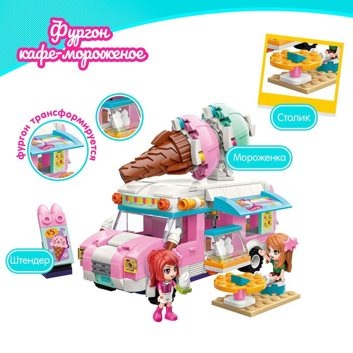 Конструктор Девчонки «Фургон кафе-мороженое», 2 минифигуры и 388 деталей