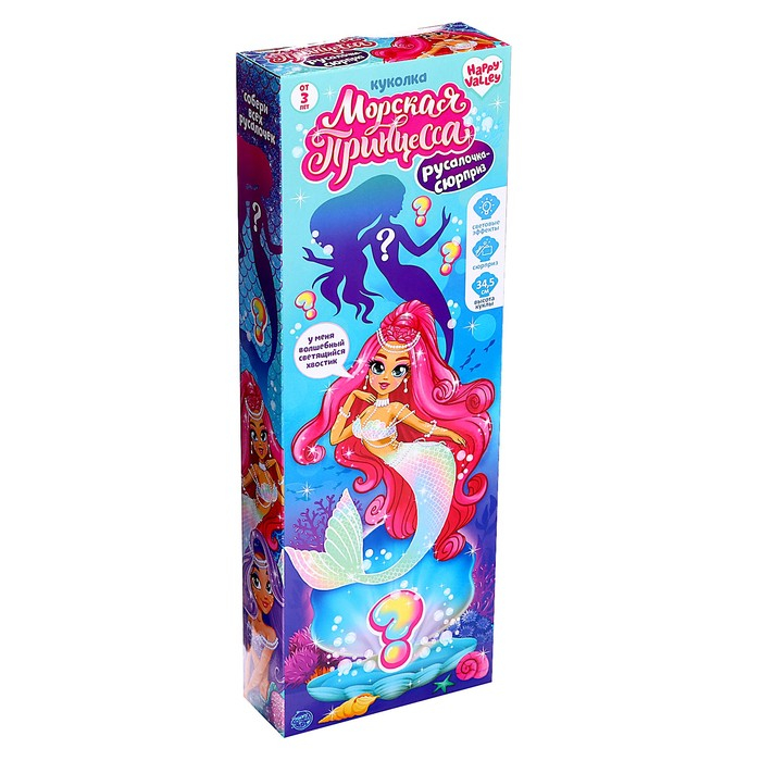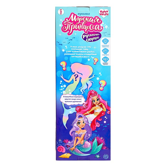 Игрушка привлекает внимание роскошным хвостом, ведь он светится! Руки русалки можно легко поднимать и опускать. А роскошные длинные волосы — расчёсывать, заплетать в косички и делать из них самые красивые причёски.