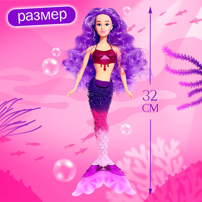 Хвост куклы светится, поэтому с ней нежелательно играть в воде!