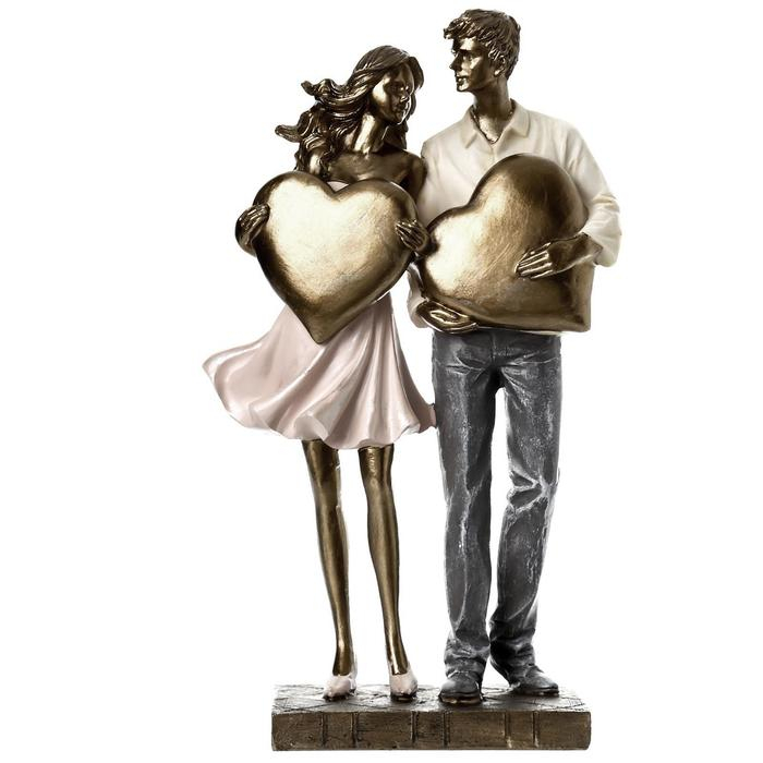 Сувенир полистоун "Влюблённая пара с сердцами" 25,5х8,5х15 см