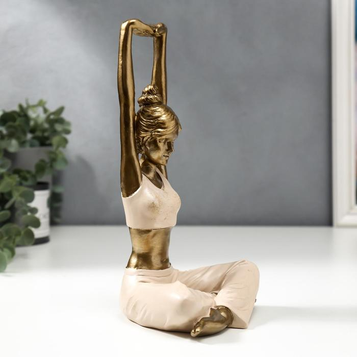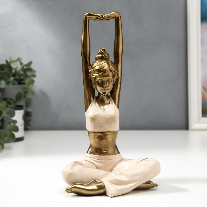 Сувенир полистоун "Девушка в позе воина" розовый 22,5х12,3х10 см