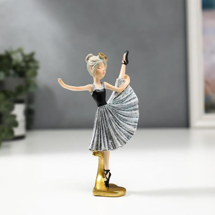Сувенир полистоун "Девочка-балерина в серо-чёрном платье и чёрных пуантах" 13х3х8 см
