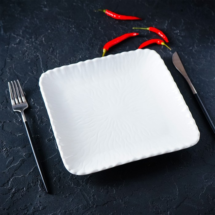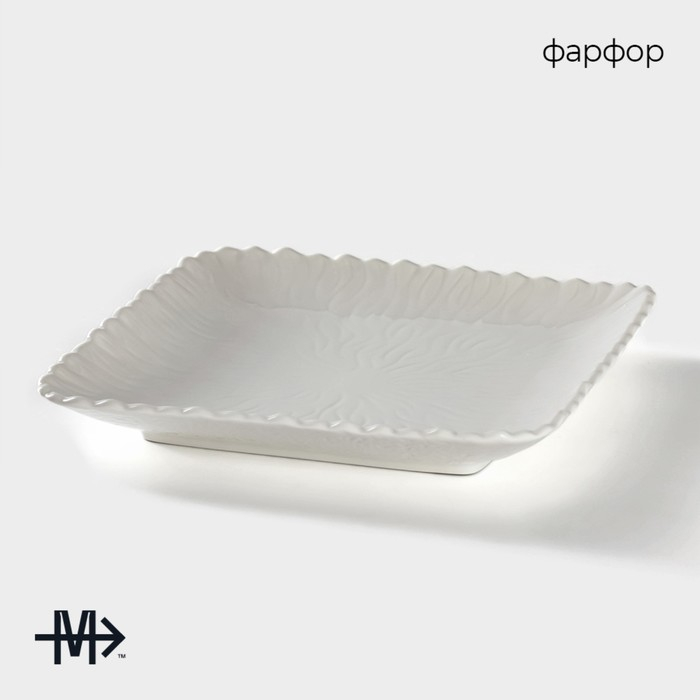 Тарелка фарфоровая пирожковая Magistro «Цветок Бланш», 22,5×22,5 см, цвет белый