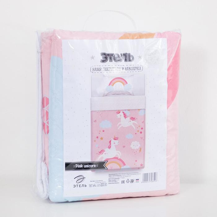 Покрывало детское и наволочка Этель 1,5 сп "Pink unicorn", 145х210 см, 40х60 см, микрофибра