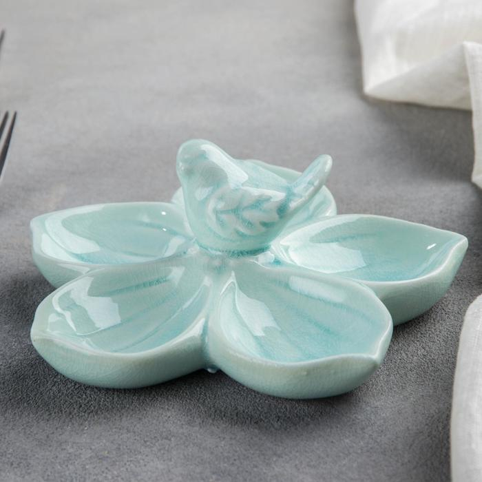 Менажница керамическая 5 ячеек «Голубка», 15,5×6,5, цвет голубой