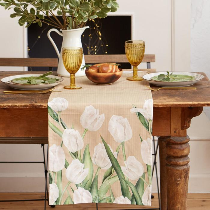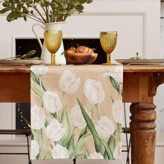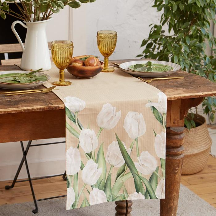Дорожка на стол "Этель" Белые тюльпаны 40х149см, 100% хл, саржа 190 г/м2