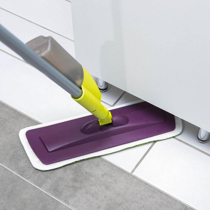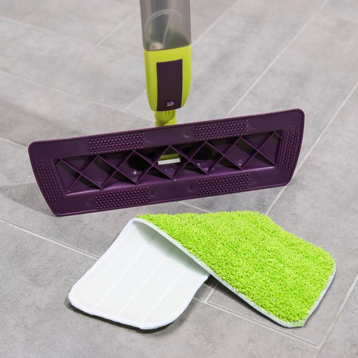 Швабра с распылителем без лишних усилий удаляет любое загрязнение. В чём же секрет? Насадка изготовлена из специального волокна — микрофибры, которая благодаря электростатическому воздействию прекрасно притягивает пыль и аллергены, поляризует поверхность, то есть создаёт поле, не позволяющее пыли оседать длительное время.