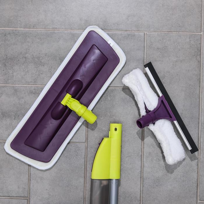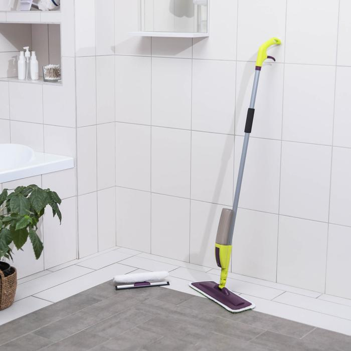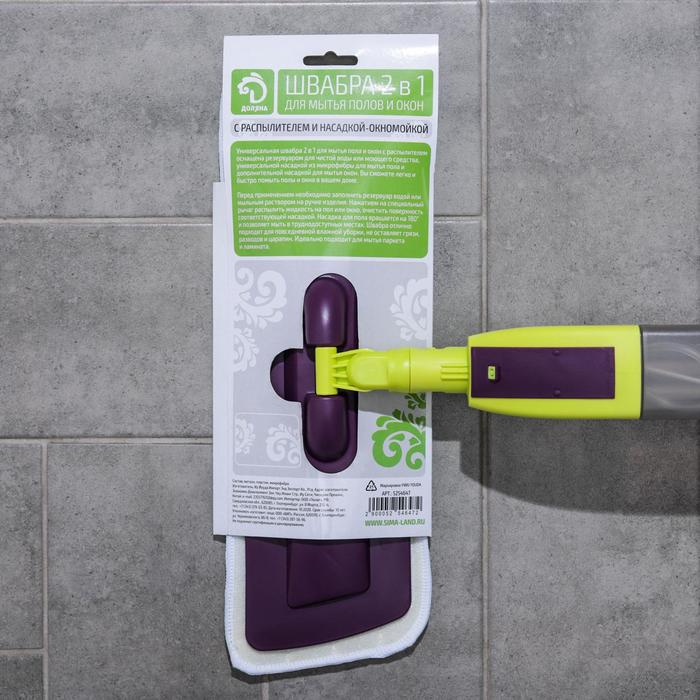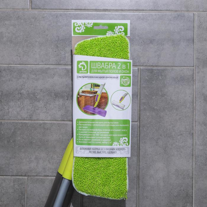 Швабра для мытья пола с распылителем Доляна, насадка из микрофибры 38×10 см, дополнительная насадка для мойки стёкол, ручка 120 см