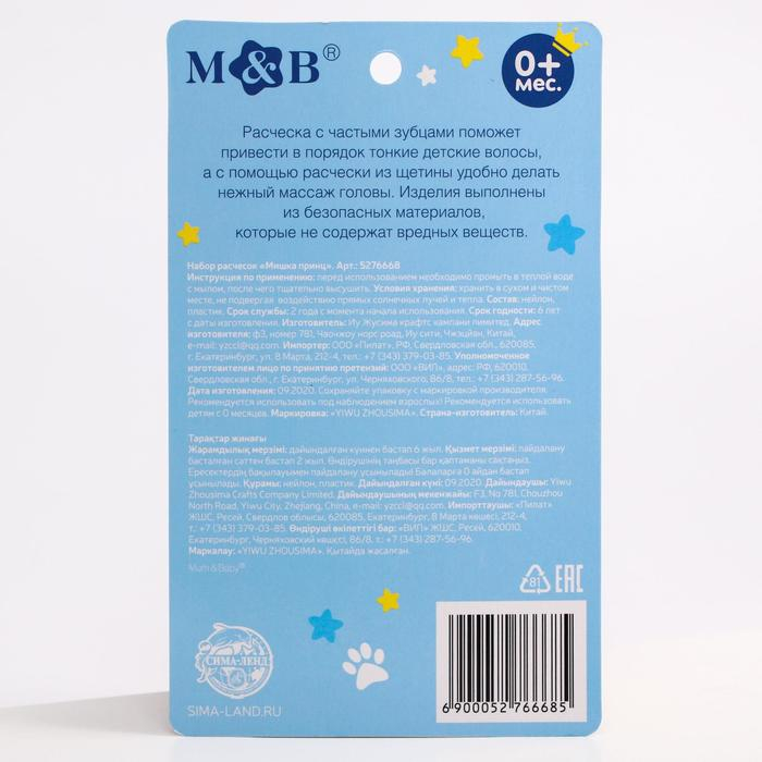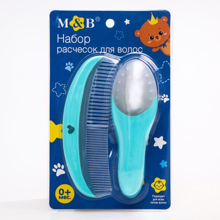 Набор для ухода за волосами «Мишка Принц», расческа и щетка, цвет бирюзовый