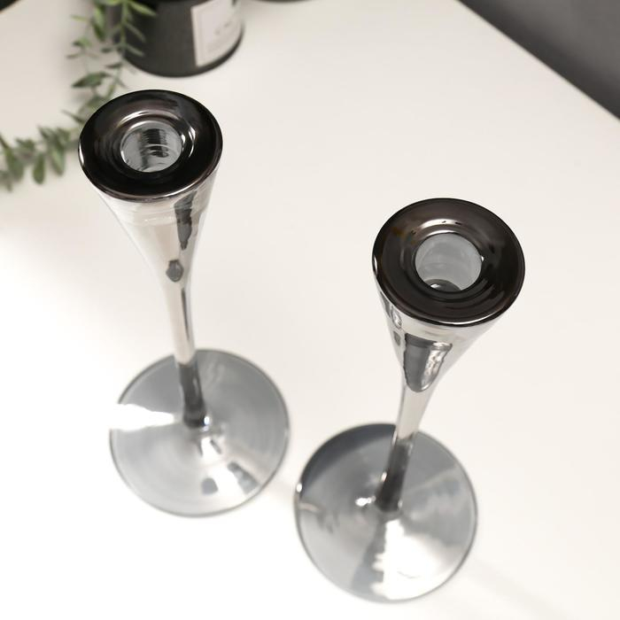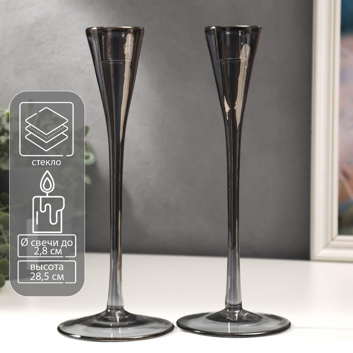 Подсвечник стекло "Узкий бокал" чёрная дымка набор 2 шт 28,5х10,5х10,5 см