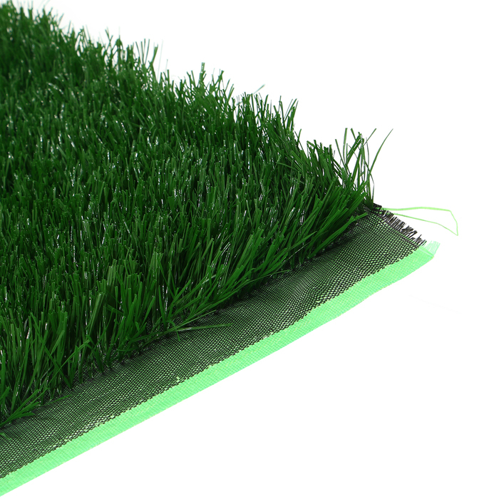 Газон пригодится для оформления футбольных полей и детских площадок. Он состоит из полиэтиленовых ворсинок длиной 50 мм, закреплённых на проклеенной полипропиленовой основе.
