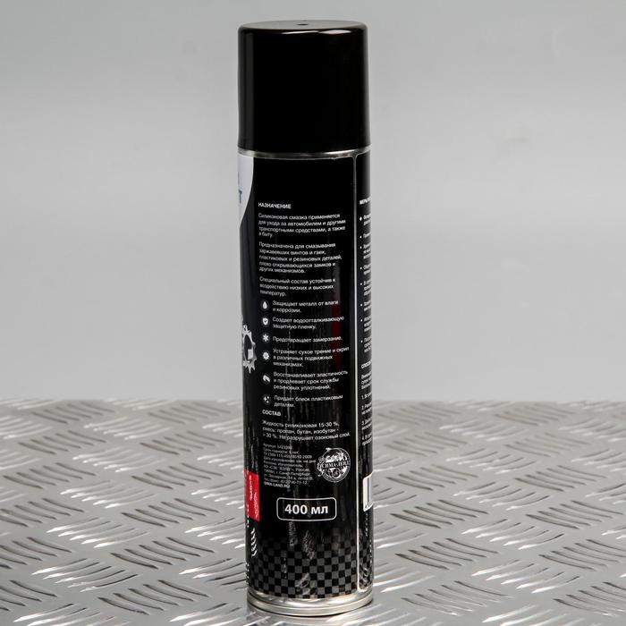 - Силиконовая смазка 400 мл, незаменимый помощник в зимний период, используется для обработки резиновых уплотнителей, исключает примерзание дверей, устраняет скрип.