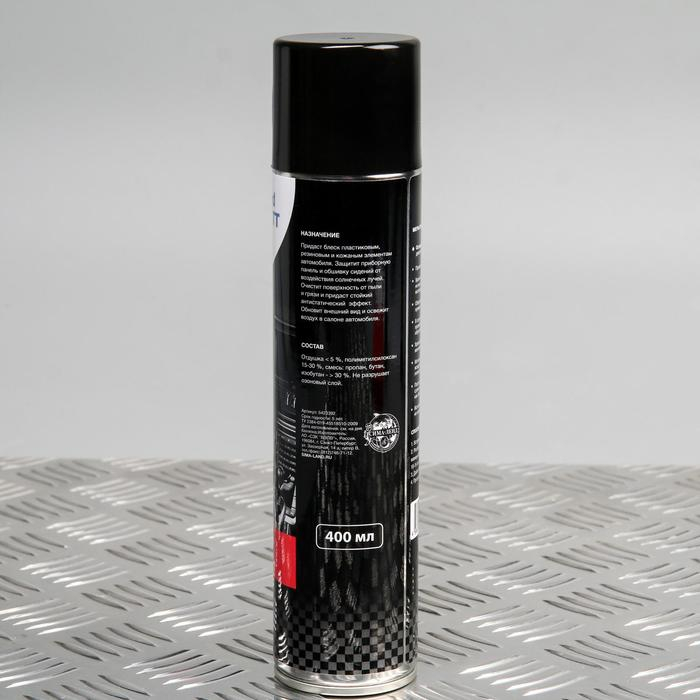 - Полироль пластика 400 мл, лимонный с антистатическим эффектом поможет отполировать поверхности салона и защитит их от воздействия солнечных лучей и влаги.