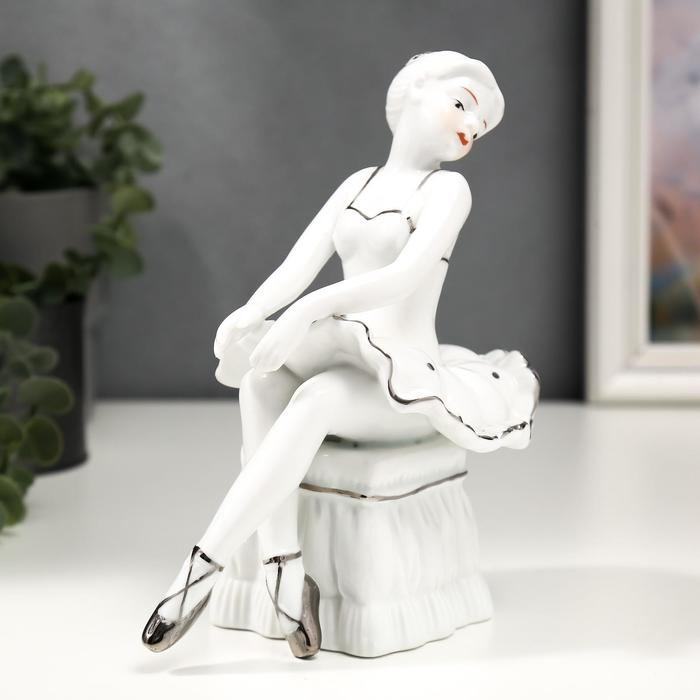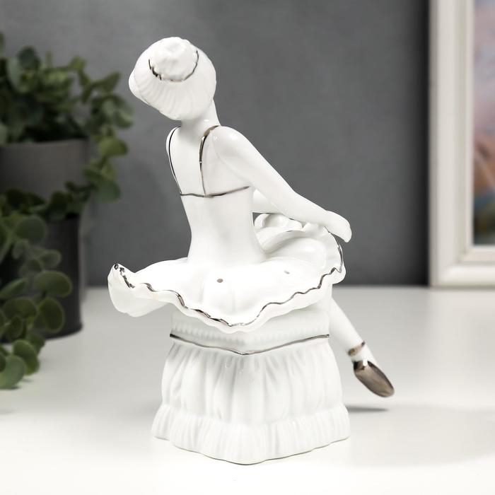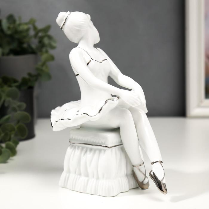 Сувенир керамика "Балерина на пуфике" белый с серебром 18х10х15,5 см