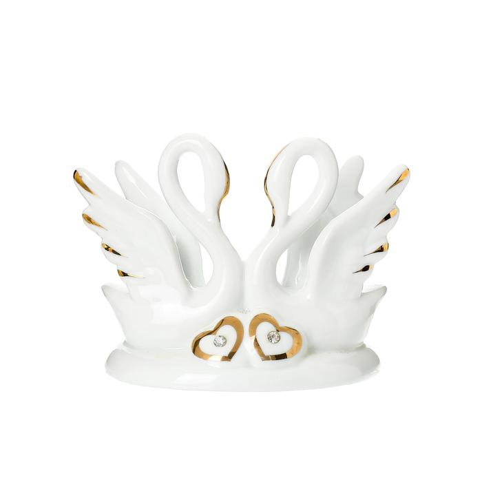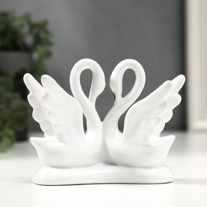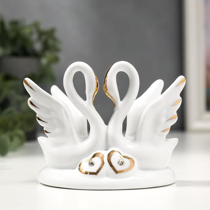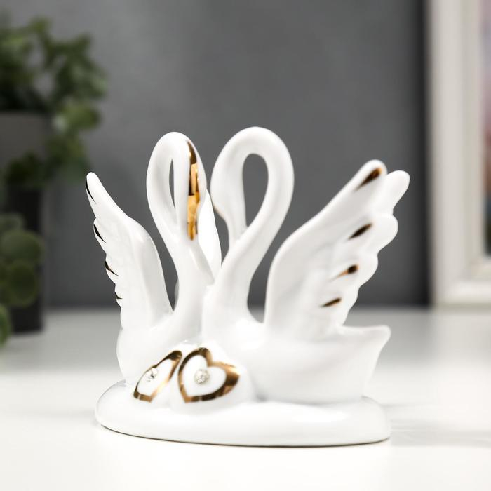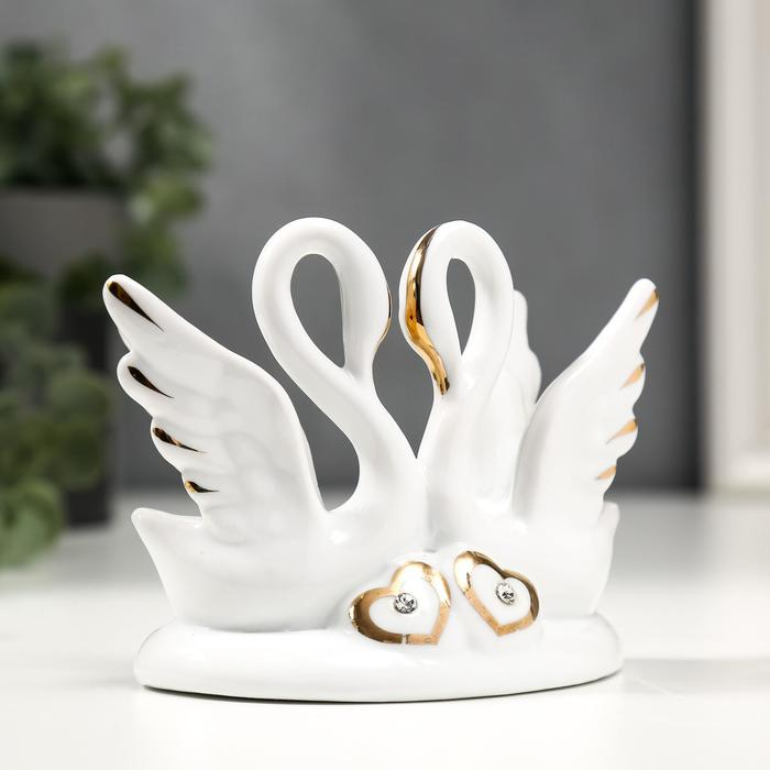 Сувенир керамика "Два белых лебедя с сердечками" с золотом 13 см