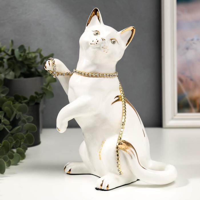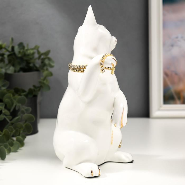 Сувенир керамика "Белая кошечка с пояском" с золотом, стразы 22,5 см