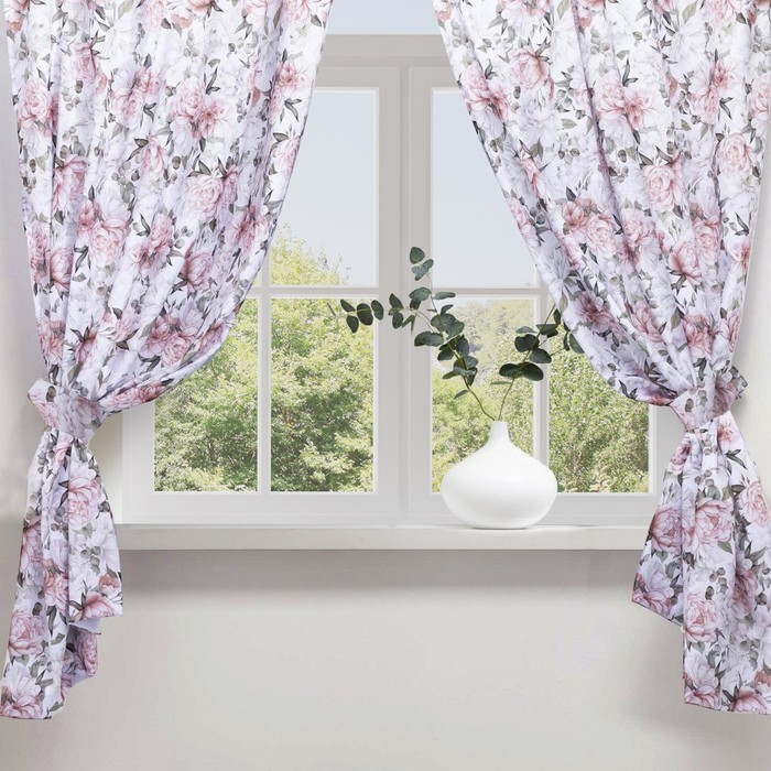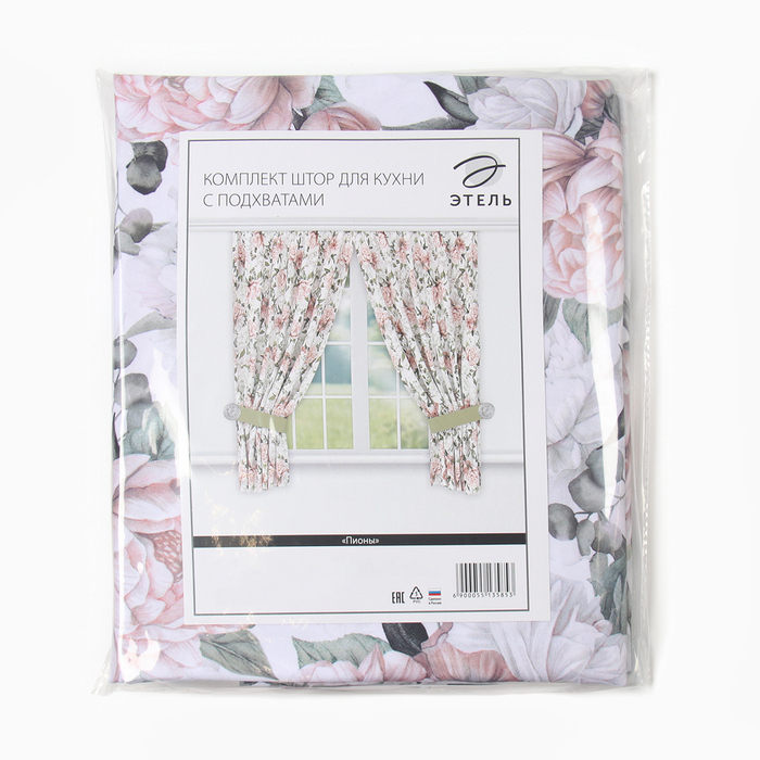Комплект штор для кухни с подхватами Этель «Пионы» 145х180см-2 шт., 100% п/э
