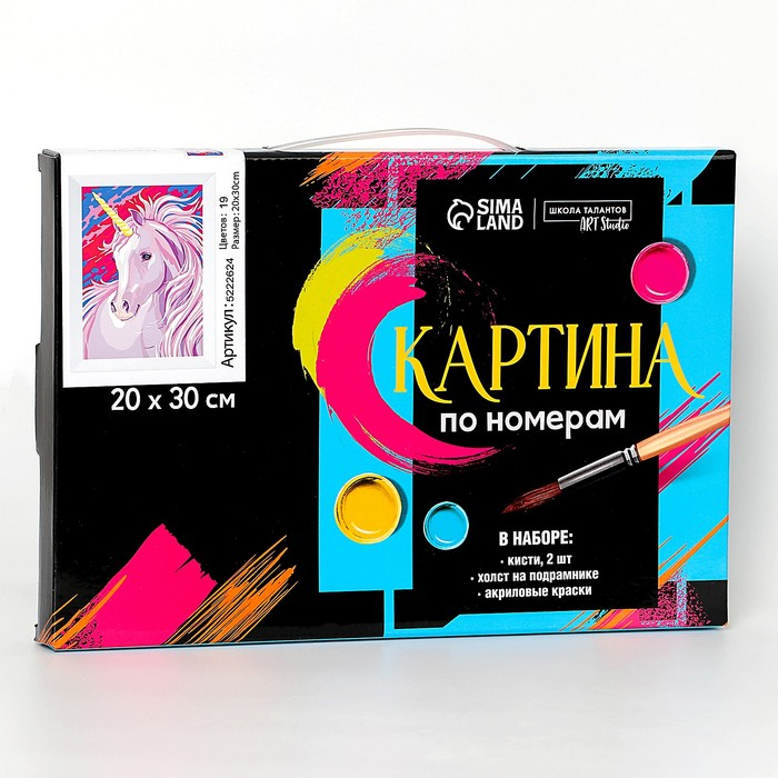 Картина по номерам на холсте с подрамником «Единорог» 20х30 см понравится и детям, и взрослым.