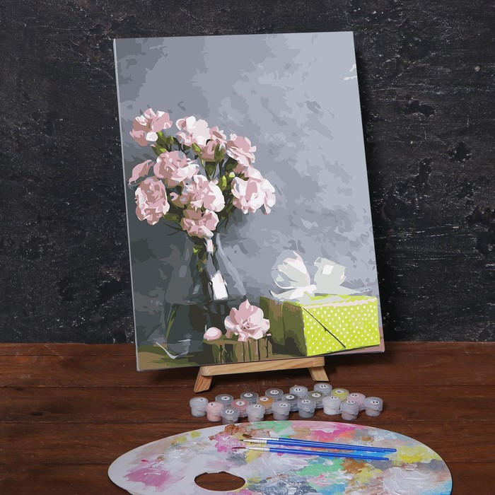 Картина по номерам на холсте с подрамником «Розовые цветы и подарок», 40х30 см понравится и детям, и взрослым.