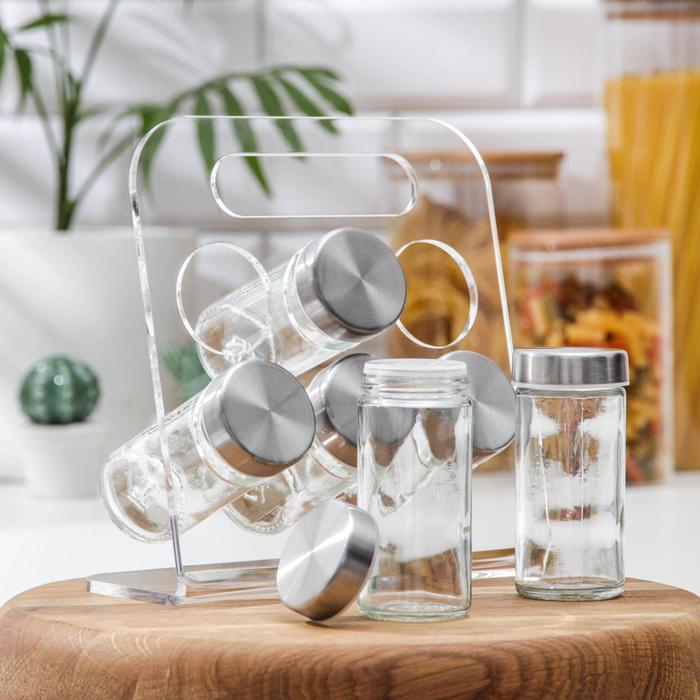 Набор для специй из стекла на подставке «Модерн», 23×9×22 см, 90 мл, 4×9,5 см, 6 шт
