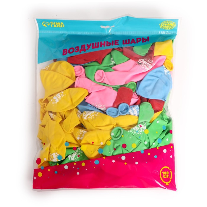 Воздушный шар латексный 12" «С днём рождения», звёзды, 100 шт.