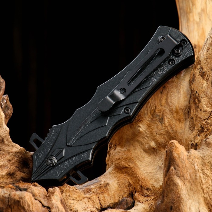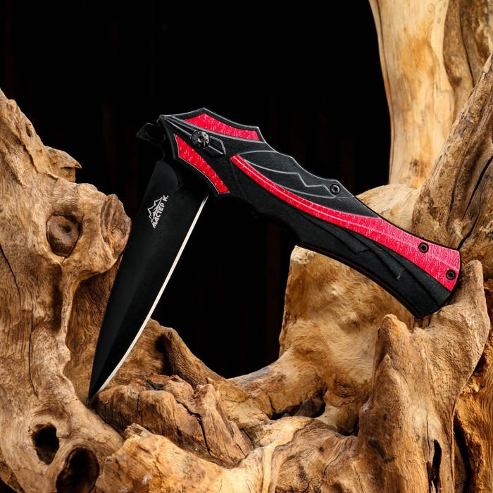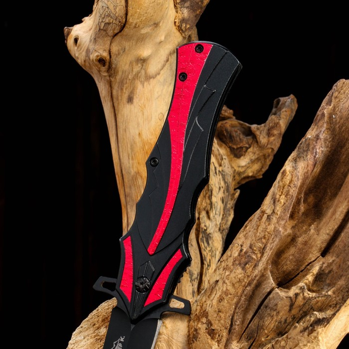 Нож складной "Пламя" черный, красная полоса, 21,5см, клинок 9,5см